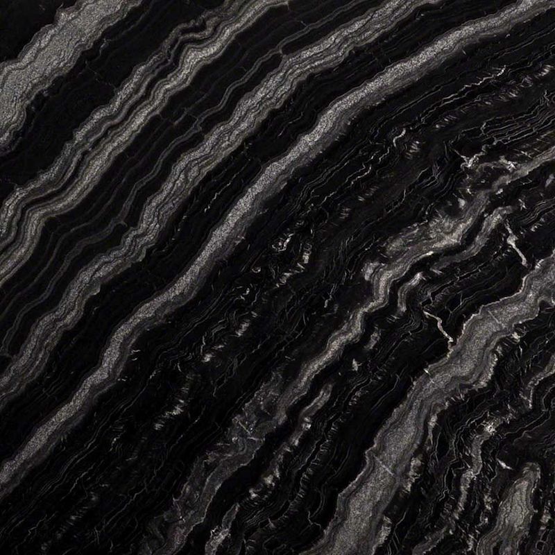 Agatha Black quartz features a dark black background that partners beautifully with light gray and white wavy veins that add movement and depth. Both 2CM and 3CM polished slabs are available and suitable for a wide range of interior and exterior design projects. Create dramatic, bold, and beautiful countertops, kitchen islands, backsplashes, floors, and accent walls wherever a durable stone is preferred.