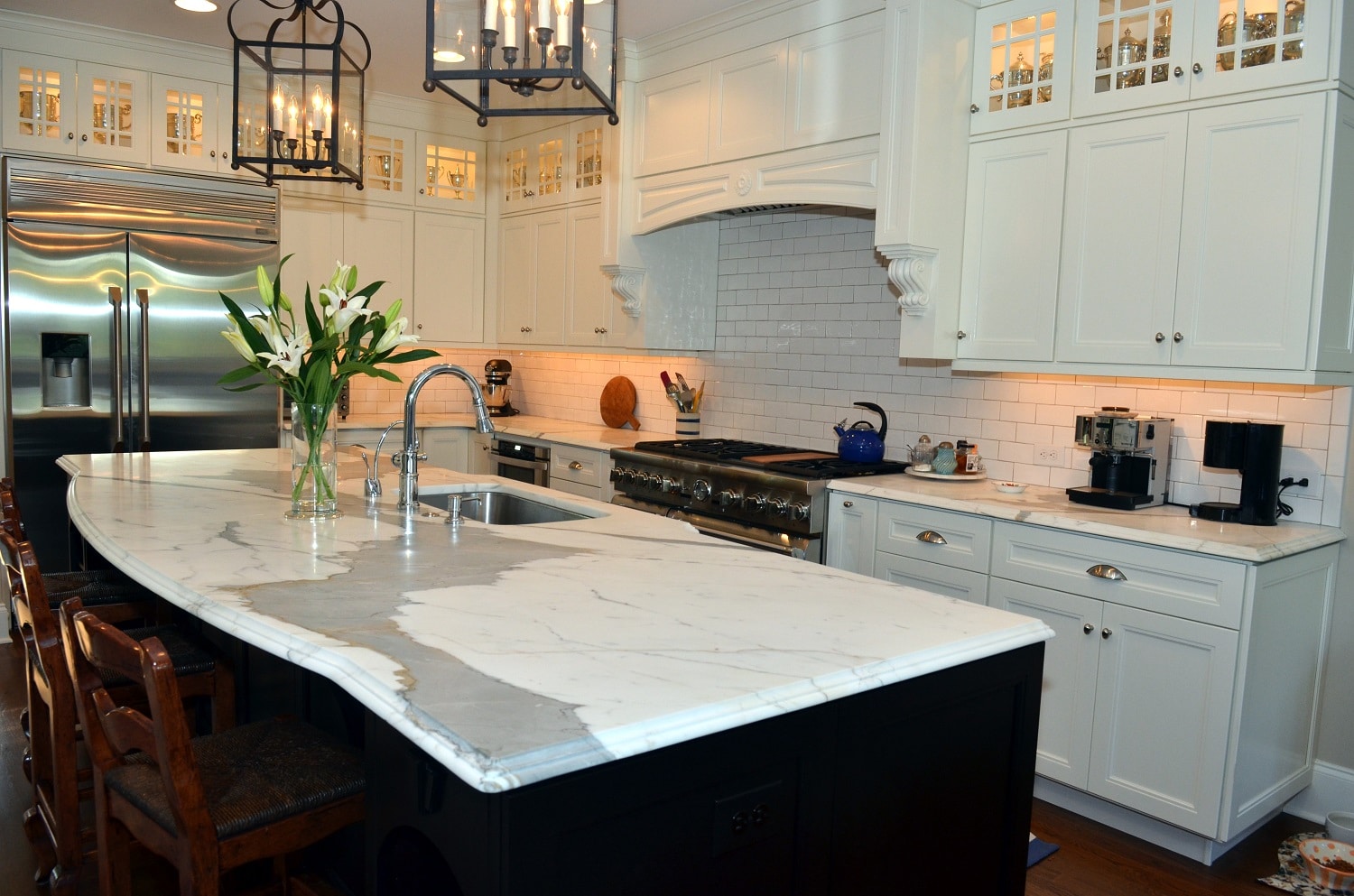 Soft silvery clouds merge with alabaster and are accented by obsidian veins in our classically appealing Arabescato Venato marble from China. Available in both polished and honed finishes, this beautiful stone is a flawless choice for marble countertops, floors, and walls, indoors or out. It is just as well-suited for commercial applications as it is for in-home.