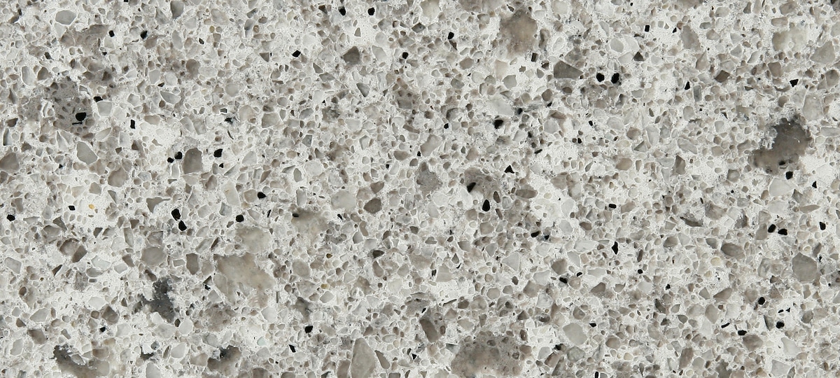 A light grey base peppered with whites, browns, and blacks, in a mix that conjures the purity of unrefined sea salts.