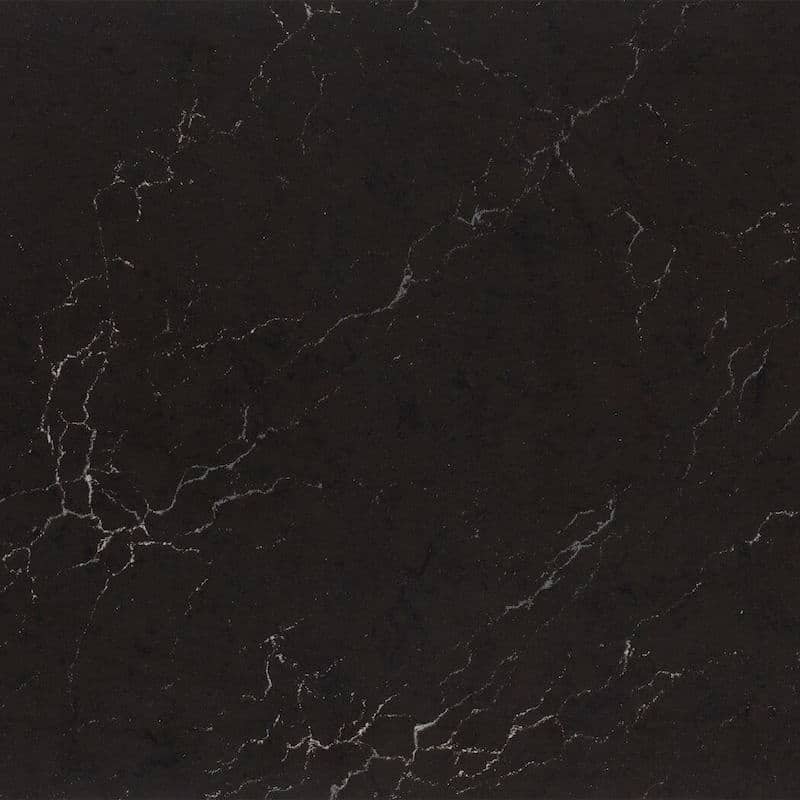 The dark and dramatic charcoal gray surface of Charlestown™ is imprinted with meandering gray and white veining above faint black currents that ripple below the surface.