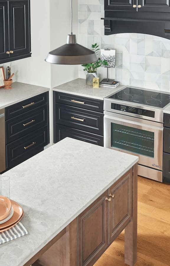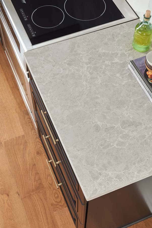 Coda is a warm mid-tone gray inspired by concrete. Coda captures the modern industrial trend and elevates it with warm white veining creating a classic but unique design. This color exhibits increased movement and variation of color and pattern which cannot be fully recognized on some samples.
