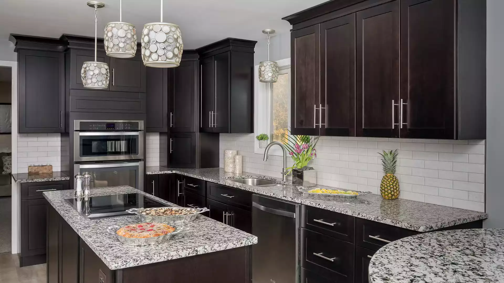 Deep black laced with a rich shade of brown, our Espresso cabinets bring warmth and drama into your kitchen design.