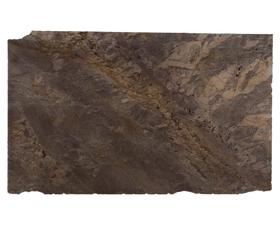 Hawaiian Bordeaux is a granite that comes from Brazil. This complex stone has many colors including plum, browns, orange/rust, ivory and black crystals in the veining. Tremendous movement in the materials make this an absolute stunning stone will a focal point in any room – kitchen, bath or bar