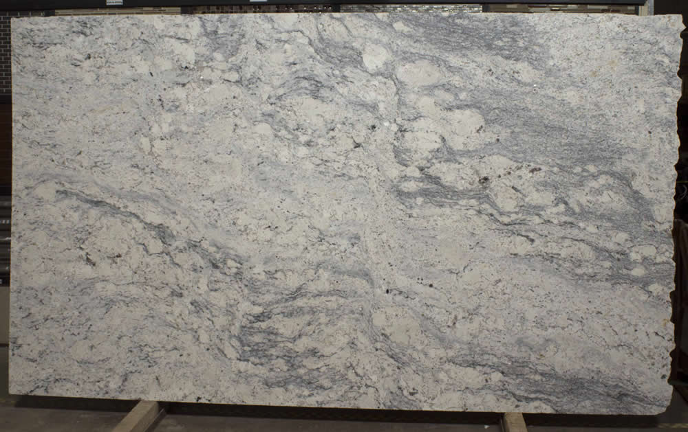 Ice White leather is a granite from Brazil. This stunning stone has an off white background with a blue and grey swirl and flecks of tan, brown and black crystals. An exceptional stone for countertops and comes honed, polished or leathered.