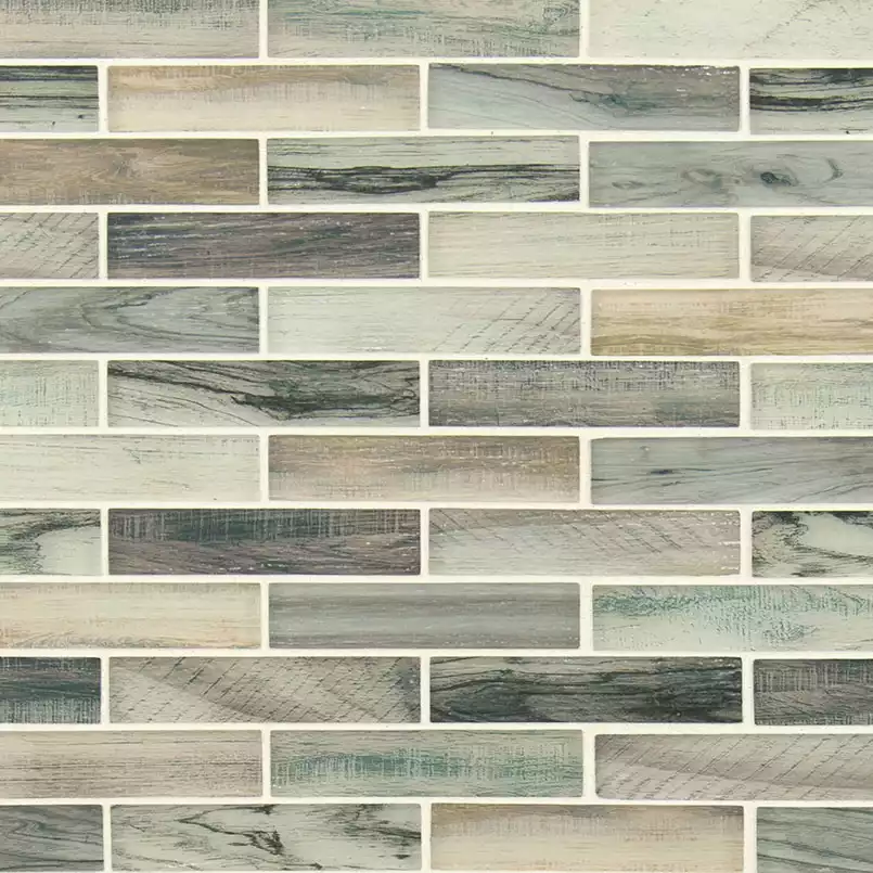 Lazio Brick is a contemporary glass tile with gorgeous shading of creams, browns, and a touch of green. This statement wood-look wall tile can be run vertically or horizontally and works wonders on backsplash, vanity walls, shower surrounds, fireplace facades, and countertops. Easy-care and durable, too—add color and interest to your residential or light commercial project with this wood-look glass tile. This tile is Greenguard Indoor Air Quality Certified® and comes mounted on mesh-backed sheets for a simplified installation and professional finish.