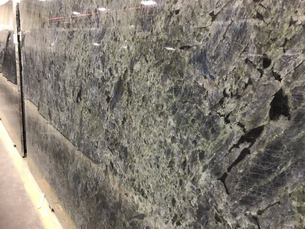 Lemorian Blue Granite is quarried in Madagascar  This special natural stone that is often seen with with different intensities of iridescent Blues with shades of Greens and Browns. Quarried in Madagascar this stone has amazing color and sparkles in any light making is a focal point for any room – kitchen, bath, bar or accent wall.   This stone is also known as: and is also known as Lemourais Blue, Lemorian Blue, Bleue Lemur, Blue Lemure, Madagascar Blue Granite, Lemurian Blue Granite. Available at Colonial Marble & Granite.