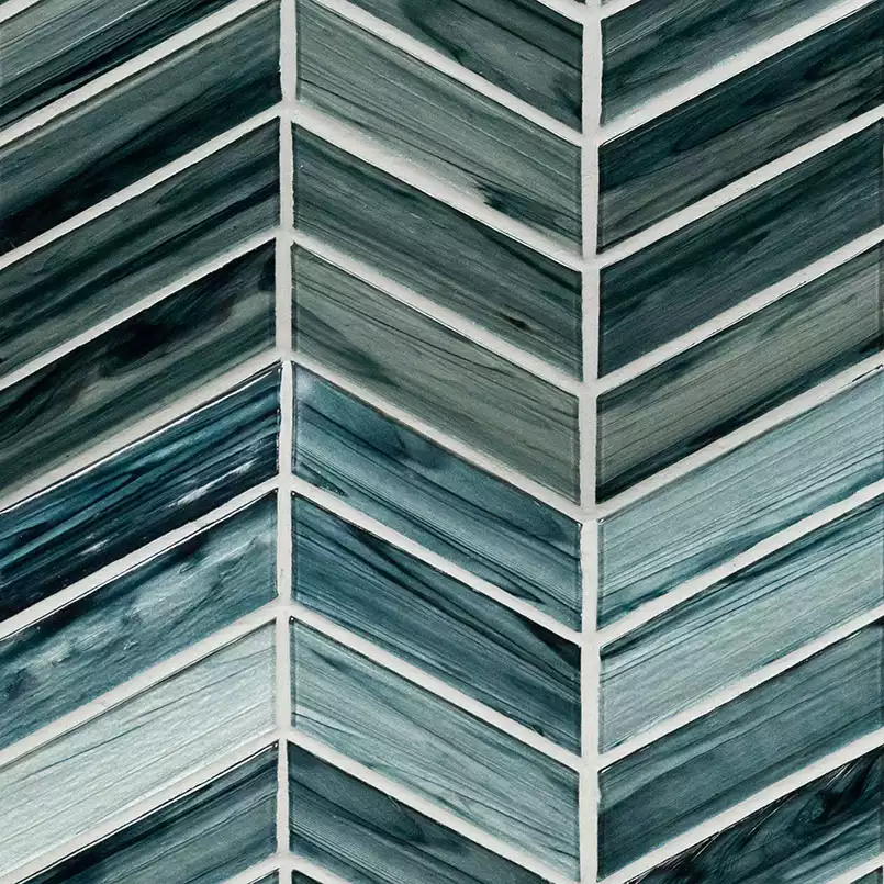 A stunning blend of blue hues merges artfully as though painted onto the glass tile in Midnight Blue Ombre Chevron. The gorgeous chevron pattern will never go out of style. Ideal for backsplashes, shower surrounds, accent walls, and a variety of applications, Midnight Blue Ombre Chevron will make people’s heads turn the minute they walk into a room.