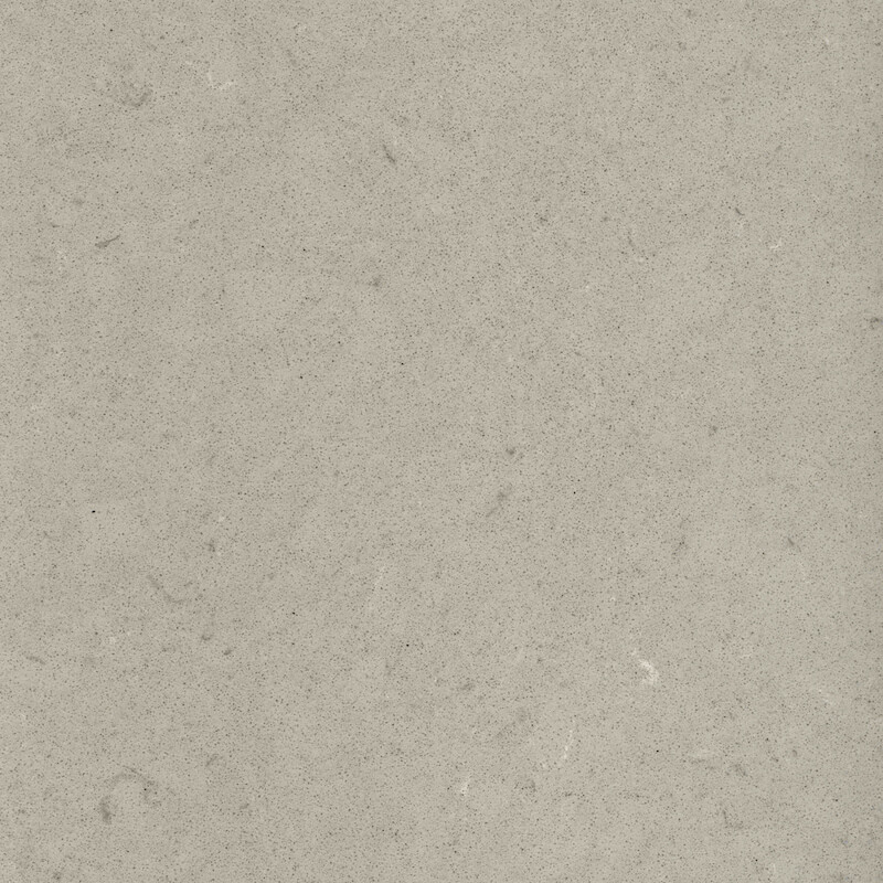 Royal Reef is a grey quartz countertop with a suede appearance and subtle patterns throughout. The stone’s surface has flecks of taupe, charcoal, black, and gray speckled throughout, with larger deposits of white and darker taupe.