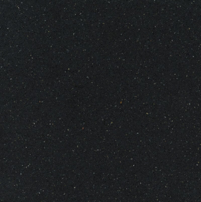 Tebas is a black quartz countertop that features speckling of color throughout. The pattern include flecks of grays, reds, greens, blues, taupes, creams, and browns, that can be seen up close. From afar the stone is primarily black, and the pattern provides the perfect depth.