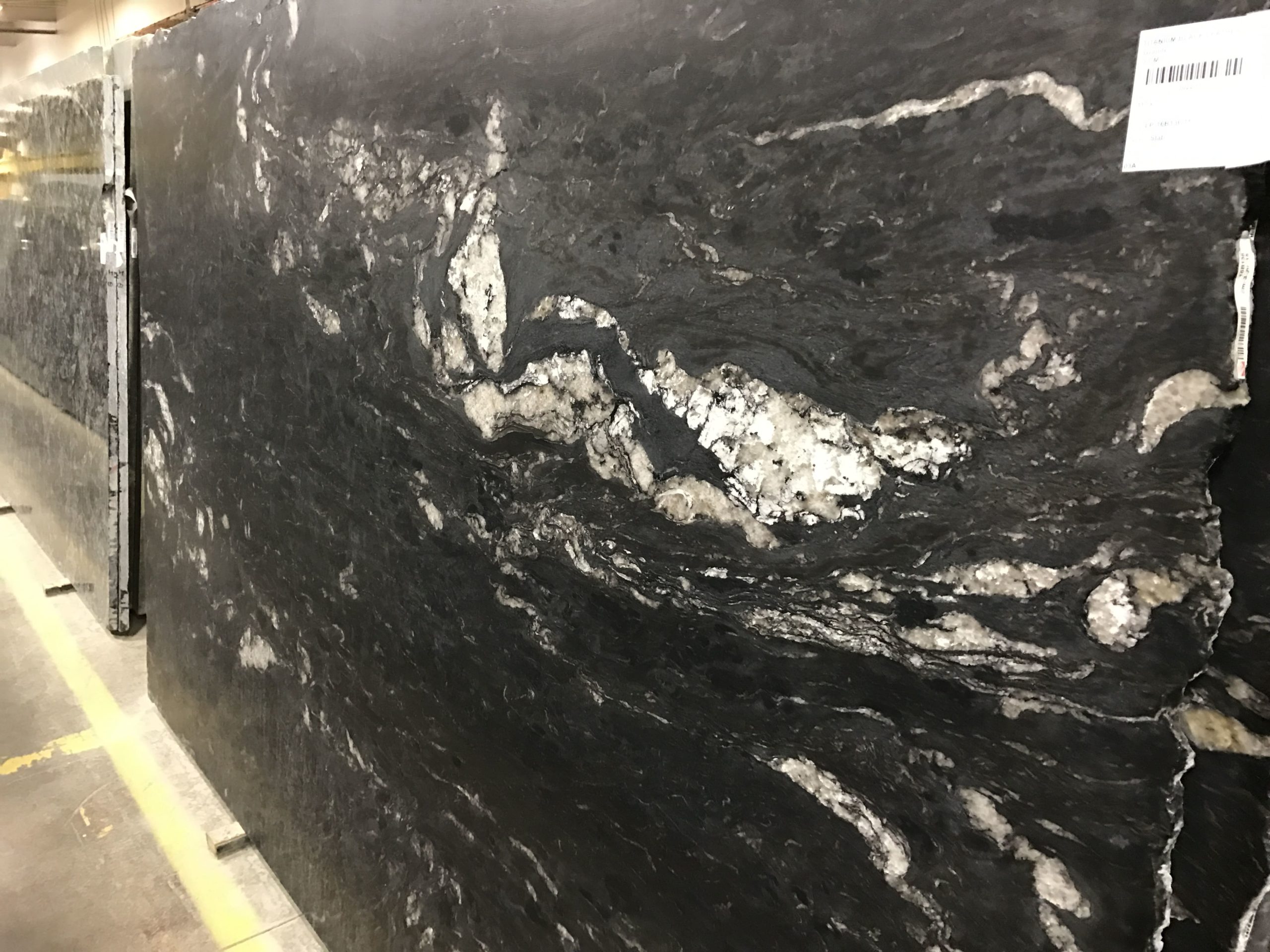 Titanium Black granite is an all-natural stone with veins of white and beige swirling against black veins and dark grey. It is perfect for kitchen countertops and bathroom vanities.
