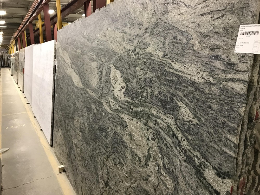 Verde Aquarius Leather Granite countertop material is available in any of our locations in King of Prussia, Philadelphia, New Castle, and Harrisburg. We design, deliver and install kitchen countertops, bathroom vanities and custom countertops to all of Pennsylvania, New Jersey, Delaware and metro New York. Call 610-994-2222 for a free estimate.